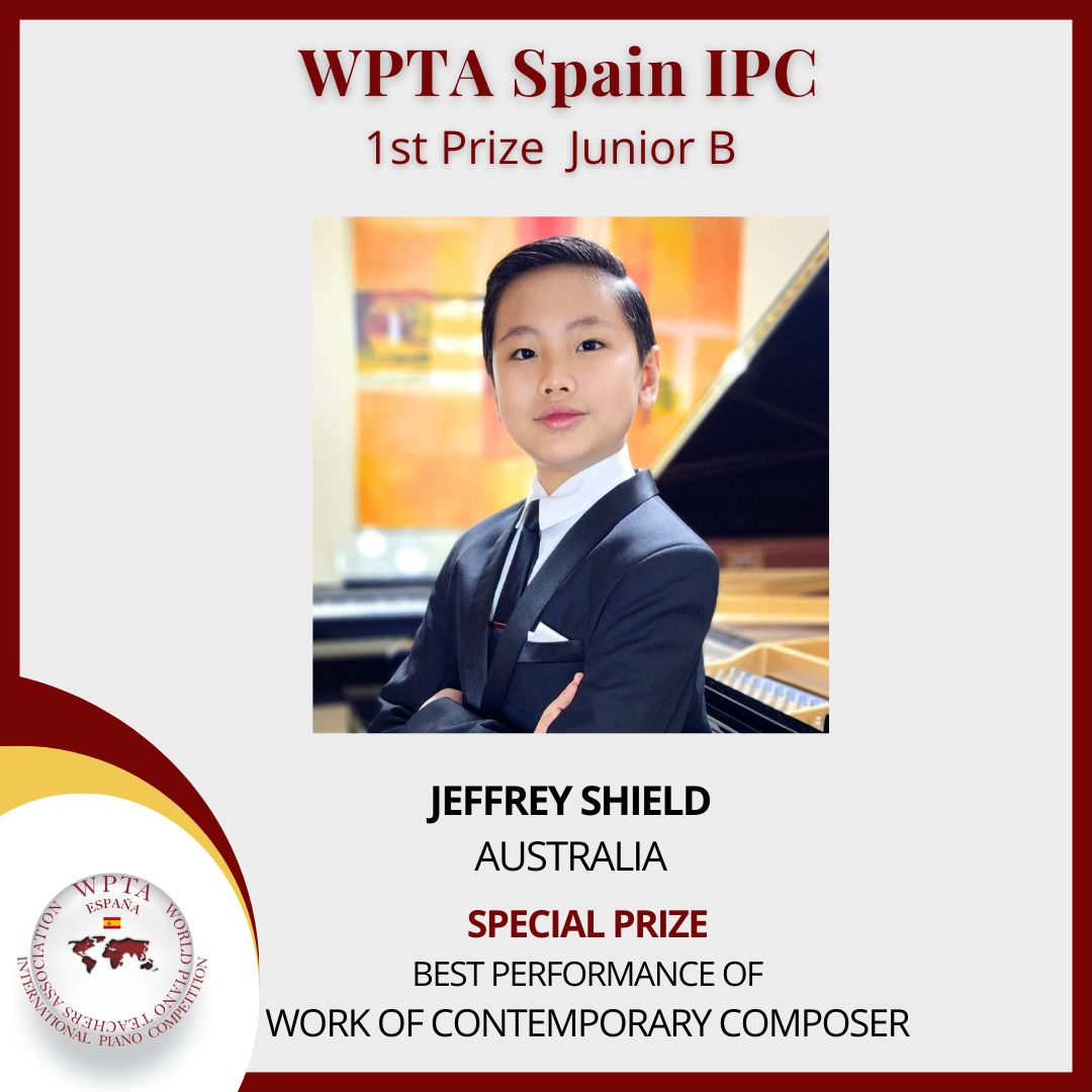 | Jan 2025 | 1st Prize in the Junior B category at the WPTA Spain International Piano Competition 2024 | Spain |